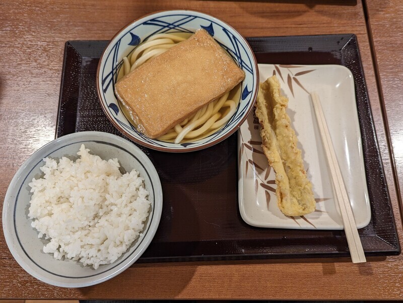 昼食はフードコートへ。TAKEは肉のヤマキに行くのではと思ってたが肉の匂いかいだら今日は肉じゃないと思ったらしい。なるほど(笑)で、丸亀製麺へ。きつねうどんとごはんとちくわ天を食う。dポイント付いたけど、ギガ活しようと思ったらここはau PAYの支払いに対応してなかったので出来なかった。残念。